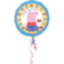 Hauska sininen pyöreä Folioilmapallo söpöllä Pipsa Possu-teemalla. Folioilmapallon halkaisija on n.43 cm.