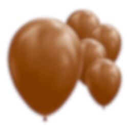 10 kpl lateksi-ilmapalloja ruskeassa värissä. Kiva koriste synttäreille tai muihin juhliin. Pallot ovat halkaisijaltaan noin 30 cm puhallettuna ja ne täytetään ilmalla tai heliumilla.