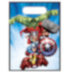 6 kpl muovisia juhlapusseja vauhdikkaalla kuvalla Hulkista, Thorista, Captain Americasta ja Iron Manista. Täydellisiä täytettäväksi karkeilla ja pienillä yllätyksillä, jotka lapset voivat viedä kotiin Avengers-teeman synttäreiltä.