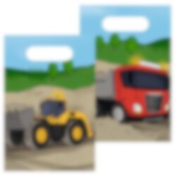 8 kpl paperisia juhlapusseja, joissa on erilaisia rakennuskoneiden kuvia. Hauska antaa juhliissa ystäville. Juhlapussien koko on 23 x 16 cm.