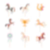 Koristele muffinssit, kakku tai leivokset näillä ihanilla hevosteemaisilla Cake Toppers -koristeilla. Setti sisältää kaiken laukkaavista hevosista hevosenkenkiin, ruusukkeisiin ja palkintopokaaleihin – täydellinen todellisten hevosjuhlien jälkiruokapöytään. Koristeet ovat noin 11 cm korkeita. Valmistettu puusta ja paperista.