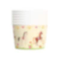 Tarjoa jäätelöä tai muita herkkuja näistä ihanista hevosteeman kupeista. Värikkäät hevoset, sydämet, kukat ja hevosenkengät tuovat mieleen aurinkoisen päivän maaseudulla. Ne sopivat täydellisesti talliteeman lastenjuhliin. Tilavuus 150 ml, korkeus 5,4 cm.