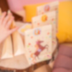 Nämä hienot juhlapussit hevosaiheella ovat täydellisiä karkilla tai pienillä lahjoilla täytettäväksi. Pussit ovat kooltaan 18 x 11 cm ja ne suljetaan mukana tulevilla tarroilla.