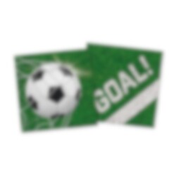 Tee kattauksesta erityisen juhlava näillä jalkapalloaiheisilla serveteillä. Vihreä tausta, jalkapallo ja teksti GOAL! luovat leikkisän ja urheilullisen tunnelman, ja ne sopivat täydellisesti jalkapallosynttärijuhliin, ottelujuhliin ja urheiluteemaisiin syntymäpäiviin.