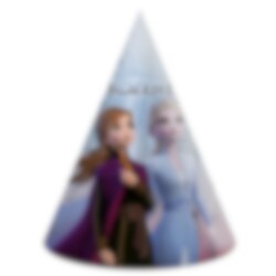 6 kpl juhlahattuja uskomattoman upealla Frozen 2 teemalla. Hauska antaa vieraille, kun on Frozen teemaisten juhlien aika. Hatut ovat noin 19 cm korkeita ja ne pysyvät paikoillaan kuminauhan avulla.