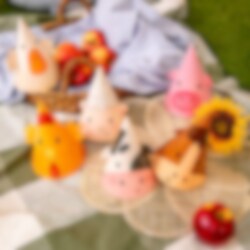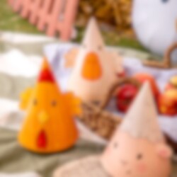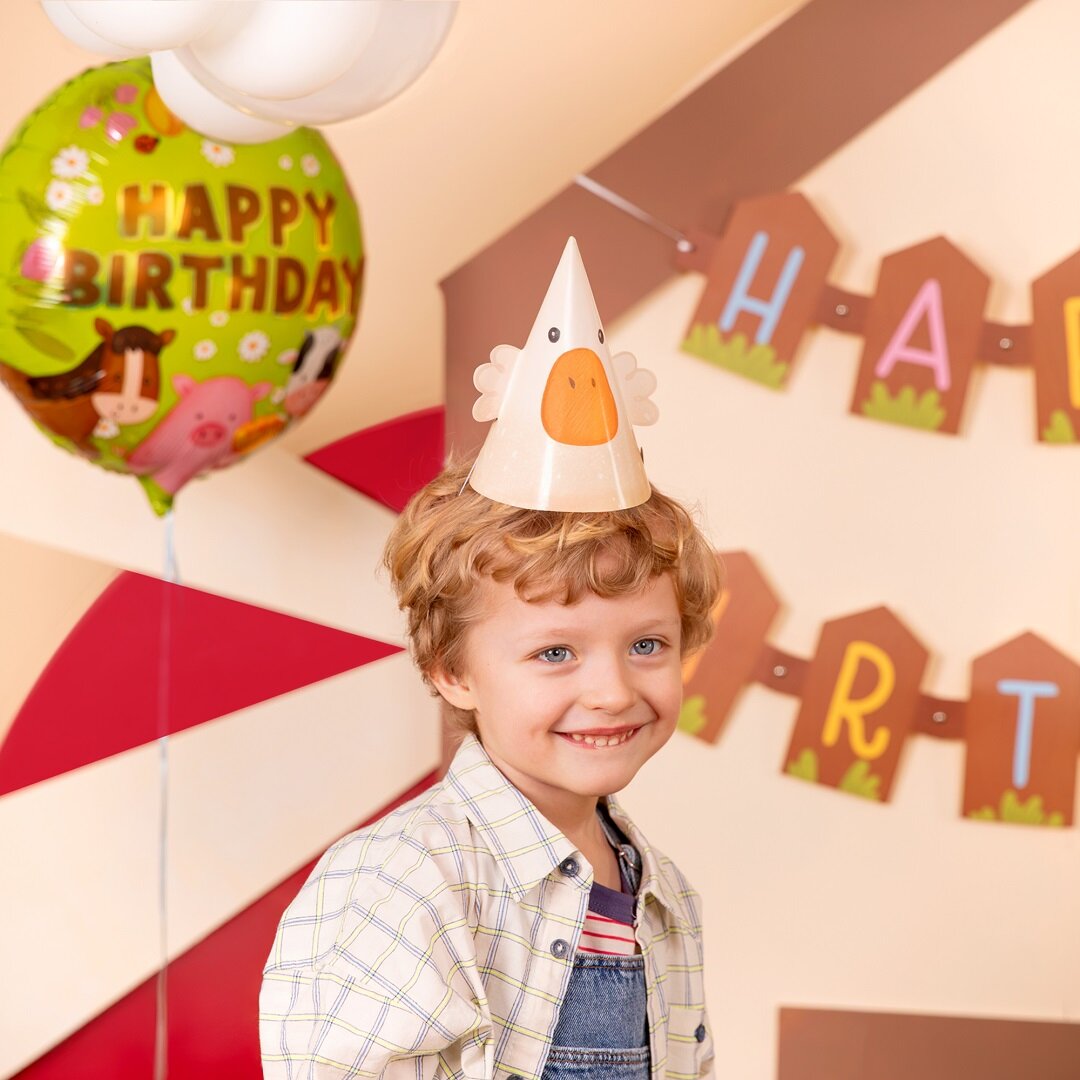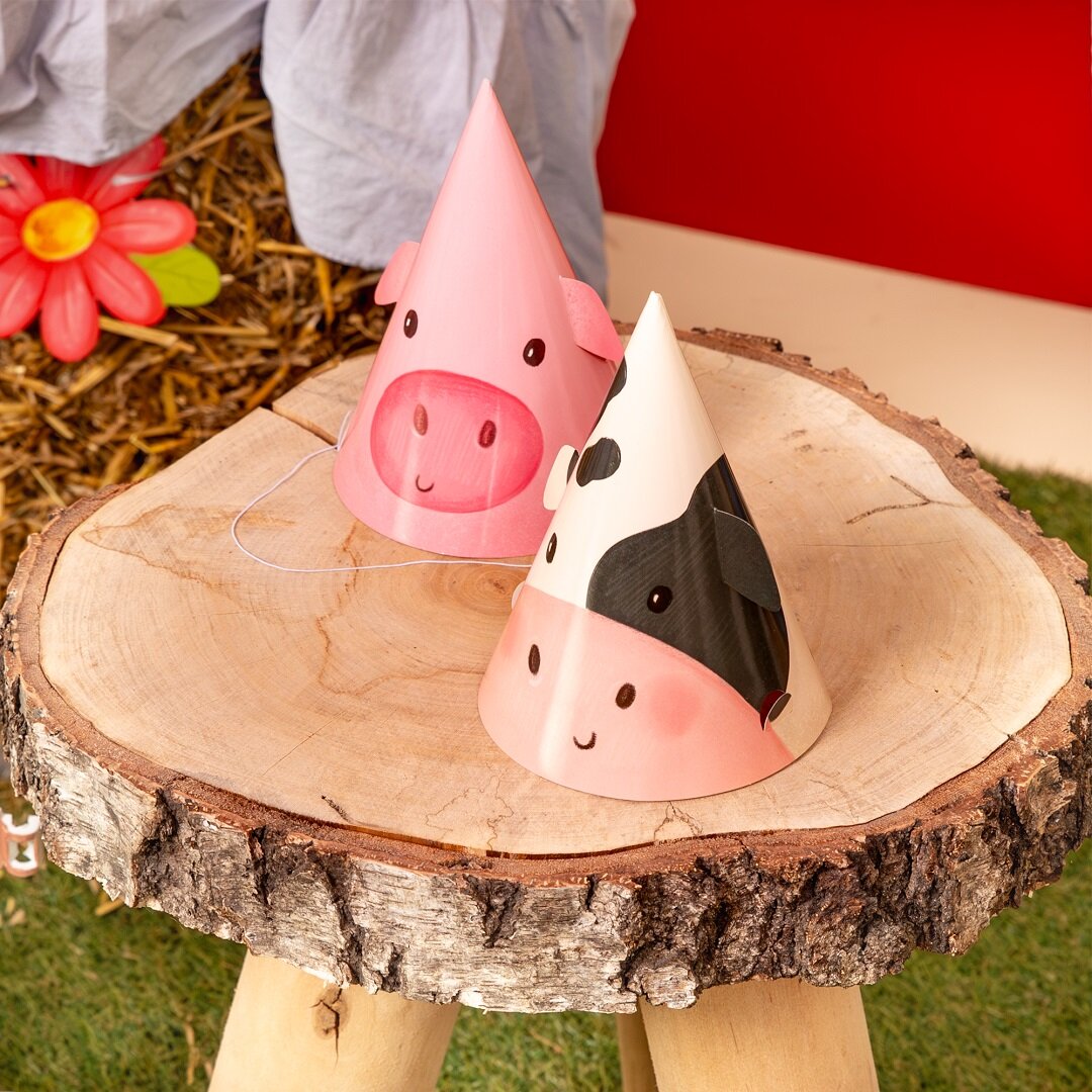 6 kpl maatila-aiheisia juhlahattuja, jotka ovat leikkisiä ja hurmaavia yksityiskohtia lasten synttärijuhliin. Hatuissa on söpöjä kuvia, kuten lammas, ankka, possu, hevonen, lehmä ja kana, mikä sopii täydellisesti maatila-aiheisiin synttärijuhliin.