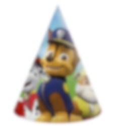 6 kpl hauskoja juhlahattuja Ryhmä Hau tv-sarjan Marshall, Chase ja Rubble kuviolla. Hauska lisä juhlakattaukseen. Hatut ovat n. 19 cm korkeita ja asetetaan resorinauhalla.