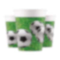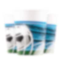 8 pahvimukia hienolla Soccer Fans-teemalla. Sopivat täydellisesti hauskoihin jalkapalloteemaiisiin juhliin. Mukit ovat noin 10 cm korkeita ja niihin mahtuu noin 200 ml.