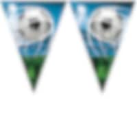 Tyylikäs paperiviiri jalkapallokuviolla. Hieno koriste jalkapalloteemaisiin juhliin. Viirin pituus on noin 2,3 metriä ja jokainen viirin osa on noin 24,5 cm korkea.