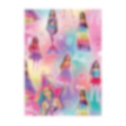Kaunis ja värikäs lahjapaperi Barbie-teemalla. Pakkaus sisältää 2 kpl lahjapaperiarkkia, jotka ovat 50 x 70 cm kokoisia ja 2 kpl nimikylttejä.
