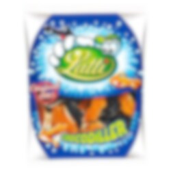Lutti Krokotiilit viinikumeja, jotka on muotoiltu krokotiileiksi. Erilaisia hedelmämakuja. Paino: 130 grammaa.