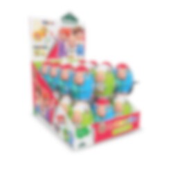 Karkkimuna ja lelu Cocomelon-teemalla. Täydellinen yllätys lasten juhlapussiin tai juhlarasiaan. Muna on kooltaan noin 8 x 6 cm ja ne myydään yksittäin ja lajittelemattomana.