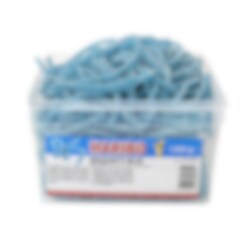 Haribo spagettikarkkia sinisenä. Herkullinen hedelmän makuinen karkki tulee 1,5 kg rasiassa.