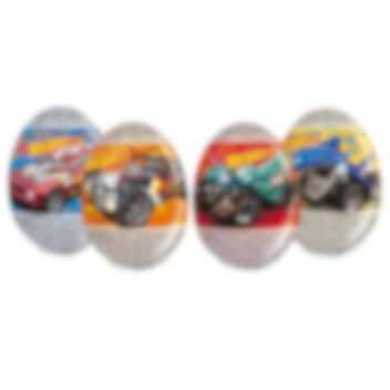 Yllätä lapset herkullisilla Hot Wheels -suklaamunilla, jotka on koristeltu hauskoilla kuvilla. Jokainen muna sisältää pienen lelun ja sopii täydellisesti juhlapusseihin tai hauskaksi yllätykseksi lasten syntymäpäiville. Munat myydään yksittäin ja lajittelemattomina, joten sisältö on aina jännittävä yllätys.