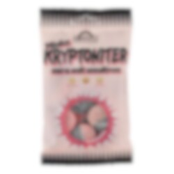 Pehmeitä kryptoniittimakeisia mansikan ja lakritsin makuisena. Yhdessä pussissa on 60 grammaa.