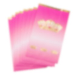 8 kpl vaaleanpunaiseksi liukuvärjättyä paperipussia, joissa on kultafoliolla päällystetyt prinsessakruunut. Täydellisiä makeisille ja muille juhlayllätyksille. Pussien koko on 20 x 12 cm.