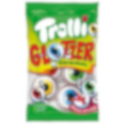 Trolli Pop Eyes on hauska ja pelottava silmän muotoinen vaahtokumikarkki – täydellinen halloweeniin. Karkki maistuu hedelmälle ja täyte on kirpeää, 75 grammaa.
