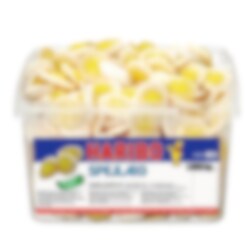 Klassiset Haribo-viinikumit paistettujen munien muodossa.