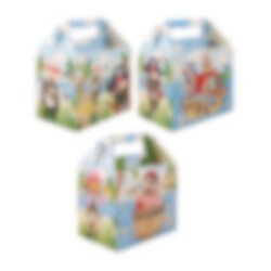 Kiva juhlarasia, jossa kolme erilaista merirosvo-aihetta. Täydellinen karkeille ja leluille juhlissa. Juhlarasia on kartonkia ja helppo koota. Koko ilman kahvaa: 15 cm pitkä, 10 cm leveä ja 12 cm korkea. Juhlarasia myydään kappaleittain ja lajittelemattomina.