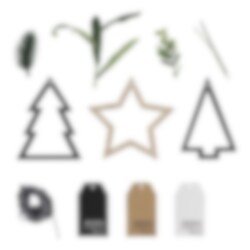 Tyylikkäät joululahjatarrat lisävarusteineen koristeelliseen paketointiin. Sopii erinomaisesti yhteen jouluaiheisten lahjapaperiarkkien kanssa.