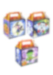 Hauska partybox kolmella eri Halloween-teemalla. Täydellinen makeisille ja leluille. Partybox on valmistettu pahvista, ja se on helppo taittaa kokoon.