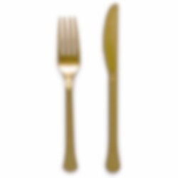 24 kpl kullanvärisiä muoviaterimia sisältää 12 veistä ja 12 haarukkaa. Setti tarjoaa käytännöllisen ja ympäristöystävällisen ratkaisun seuraavaan juhlaan tai tapahtumaan. Nämä aterimet ovat uudelleenkäytettäviä ja täydellisiä yksinkertaisiin tilaisuuksiin, kun haluat hienon silauksen tekemättä kompromissia ympäristöystävällisyydestä. Kultainen väri väri antaa juhlavan ja kutsuvan tunteen ja se sopii erinomaisesti erilaisiin teemoihin ja tilaisuuksiin. Aterimet kestävät konepesun.