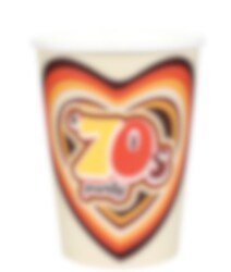 10 kpl hienoja pahvimukeja 70-luvun teemalla. Ne ovat hienoja diskoon tai teemajuhliin. Mukit ovat noin 10 cm korkeita ja niiden tilavuus on 270 ml.