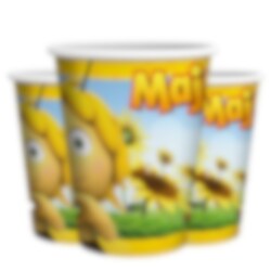 8 kpl värikkäitä pahvimukeja, joissa on Maija Mehiläinen -kuvioita. Mukien korkeus on 10 cm ja tilavuus 250 ml.
