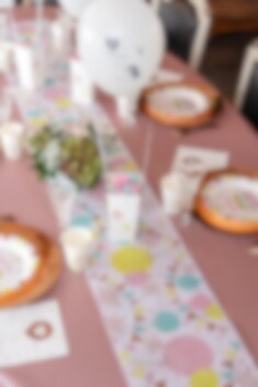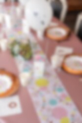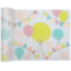 Ihana kaitaliina syntymäpäiväjuhliin. Kaitaliina sisältää erilaisia värikkäitä kuvioita ilmapalloista ja viirinauhoista. Kaikkein parasta on kaikki ruusukultaiset yksityiskohdat, jotka lisäävät tyylikkyyttä.