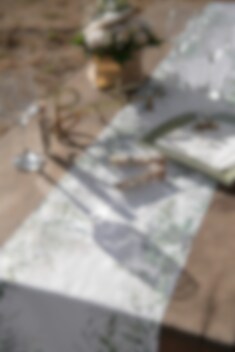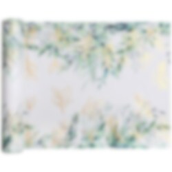 Kaunis kaitaliina hienostuneella vihreällä lehtikuviolla ja kullanvärisillä yksityiskohdilla. Viimeistele pöytä tällä hienompaa tilaisuutta tai kesäjuhlia varten.