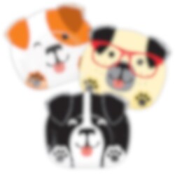 8 kpl. koiran muotoisia pahvilautasia kolmella eri designilla. Hienot koirateeman lastenjuhien juhlapöytään. Lautaset ovat noin 22 x 20 cm kokoisia.