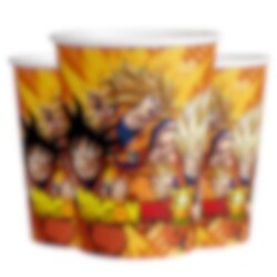 8 kpl pahvimukeja eeppisellä Dragon Ball -kuvioinnilla. Mukit ovat noin 10 cm korkeita ja tilavuudeltaan noin 200 ml – täydellisiä janon sammuttamiseen energisissä juhlissa!