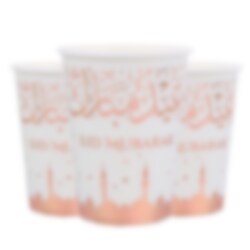10 kpl todella hienoja, valkoisia Eid Mubarak -aiheisia pahvimukeja.