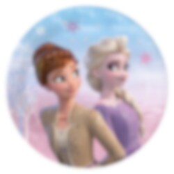 8 kauniin väristä lautasta, joissa on ihastuttavien Disney-prinsessojen Annan ja Elsan kuvat. Lautaset on valmistettu pahvista ja niiden halkaisija on noin 20 cm.