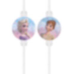 4 kpl paperipilleja Frozen-kuvioilla. Pillit ovat noin 21 cm pitkiä ja kuvioiden halkaisija n. 6,5 cm.