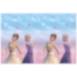 Kaunis pöytäliina jossa seikkailevat Frozen 2 - Huurteinen seikkailu elokuvasta tutut Elsa ja Anna.