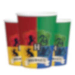 8 kpl pahvimukeja siisteillä Harry Potter-kuvilla. Mukit ovat noin 10 cm korkeita ja niihin mahtuu noin 250 ml.
