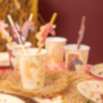 Anna hevosten laukata suoraan juhliin näiden hienojen paperipillien avulla. Hauska yksityiskohta, joka sopii täydellisesti lastenjuhliin, ratsastusteemaan tai piknikille tallilla.
