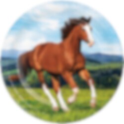 8 kpl pahvilautasia kauniilla ja todenmukaisilla kuvilla pellolla juoksevasta hevosesta. Täydelliset lautaset hevosia rakastavan juhliin. Lautaset ovat n. 23 cm halkaisijaltaan.