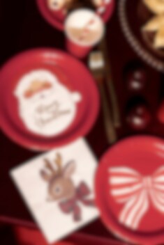 Nämä elegantit jouluservetit porokuvioinnilla luovat lämpimän ja tunnelmallisen tunteen kattaukseen. Täydelliset joulupäivälliselle, glögihetkeen tai koristeelliseksi yksityiskohdaksi jälkiruokapöytään.