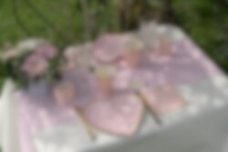 Vaaleanpunainen kaitaliina ilmavasta materiaalista. Koristeltu pienillä kultaisilla pisteillä. Kaitaliina sopii hyvin mihin tahansa juhlavaan tilaisuuteen. Vaaleanpunainen väri tekee siitä tädellisen täydentämään muita kattausvarusteita vaaleanpunaisessa ja kultaisessa sävyssä.