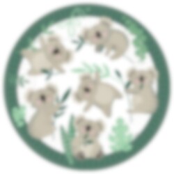 8kpl vihreän ja valkoisen väristä paperilautasta hienolla koala-teemalla. Sopii täydellisesti eläin-teemaisten juhlien pöydän kattaukseen. Lautasten halkaisija on noin 23cm.