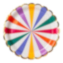 8 kpl lautasia kauniissa väreissä ja kultafolioiduilla reunoilla. Lautasten halkaisija on 23 cm ja ne on valmistettu pahvista. Kutsu ystäväsi hauskoihin juhliin.