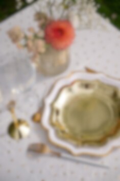 Lautasten koristeellinen muoto pehmeästi aaltoilevilla reunoilla antaa ylellisen vaikutelman. Ne sopivat täydellisesti, kun haluat kattaa pöydän jollakin, mikä tuntuu sekä juhlavalta että harkitulta, juhlan tyypistä riippumatta.
