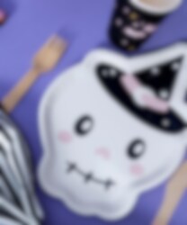 6 kpl. hauskan muotoisia lautasia Halloween-teemalla. Lautaset ovat 18 x 27 cm kokoisia.