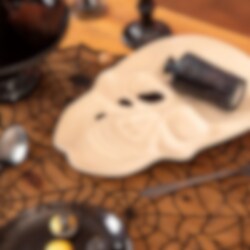 Tarjoa naposteltavia tai karkkia tyylikkäästi halloweenina tällä pääkallonmuotoisella tarjottimella. Luonnonvalkoinen väri ja yksityiskohtainen muoto luovat vaikuttavan kattauksen, olipa kyseessä sitten sipsien tai pikkuleipien tarjoilu. Uudelleenkäytettävä koriste, joka sopii täydellisesti halloween-juhliin!