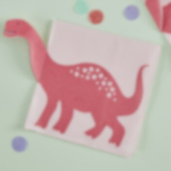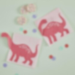 16 pientä vaaleanpunaista servettiä, joissa on tummanpinkki dinosaurus, jonka pään voi taittaa ulos servetistä. Täydellinen lisä dinosaurus-aiheisen juhlapöydän kattaukseen. Servetit ovat 2-kerroksisia ja niiden koko on noin 25 x 25 cm taitettuna.