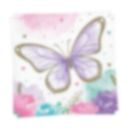 16 pientä servettiä, joissa on värikkäitä perhosia. Servetit ovat 2-kerroksisia ja niiden koko on 25 x 25 cm avattuna.
