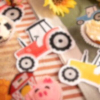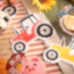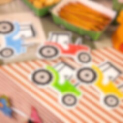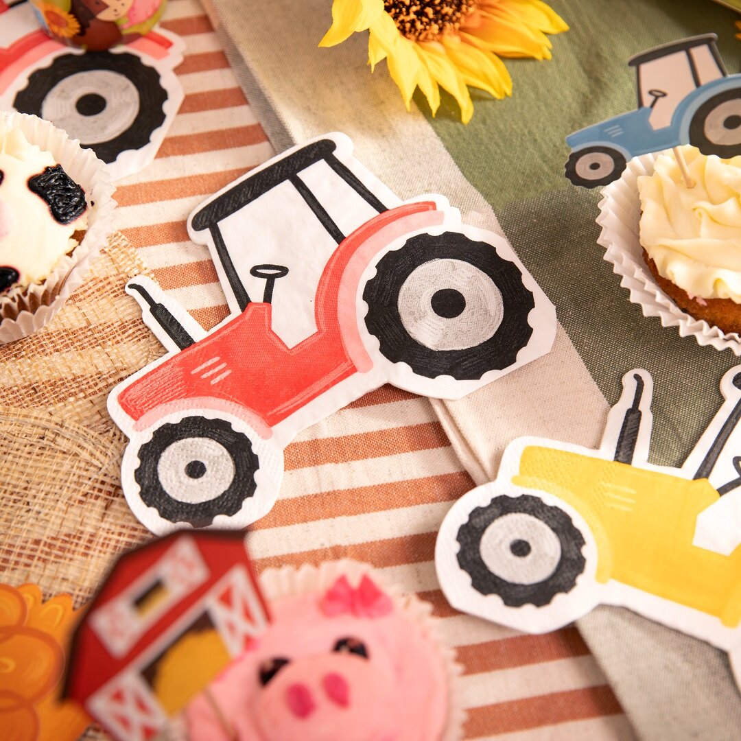 12 kpl pienten traktoreiden muotoisia servettejä, jotka tuovat leikkisän ja hurmaavan yksityiskohdan syntymäpäiväjuhlien kattaukseen. Värikkäät traktorit vihreänä, sinisenä, punaisena ja keltaisena sopivat täydellisesti maatilateemaisiin synttärijuhliin ja tekevät pöydästä erityisen juhlavan.