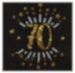 10 kpl mustia servettejä, joissa on koristeellisia kuvioita ja numero 70 kultaisella glitterillä. Nämä servetit ovat täydellisiä pöydän kattamiseen 70-vuotisjuhliin. Servetit ovat kolmikerroksisia ja tuntuvat ylellisiltä. Avattuna niiden mitat ovat 16,5 x 16,5 cm.
